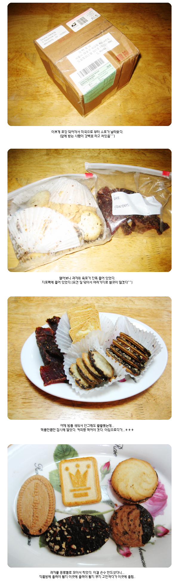 각종 초코렛과자들과 육포가 들어있는 소포가 너무 탐스러웠다는.ㅎㅎ