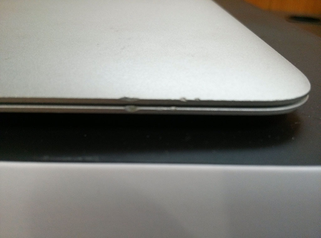 애플 로고 위쪽으로 약간 눌린 흔적이 있습니다.