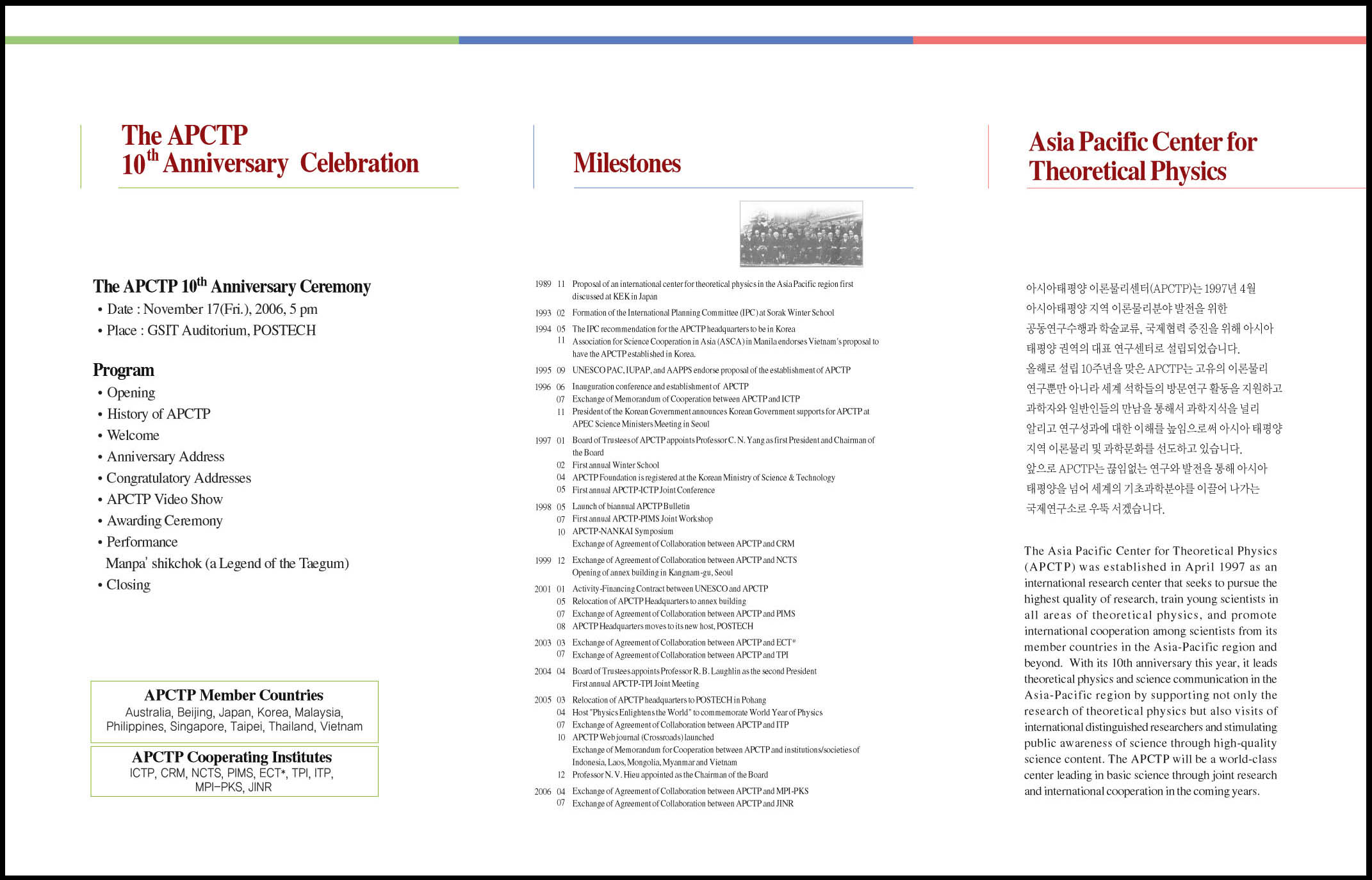 아시아태평양 이론 물리센터 10주년기념식 리플렛입니다.