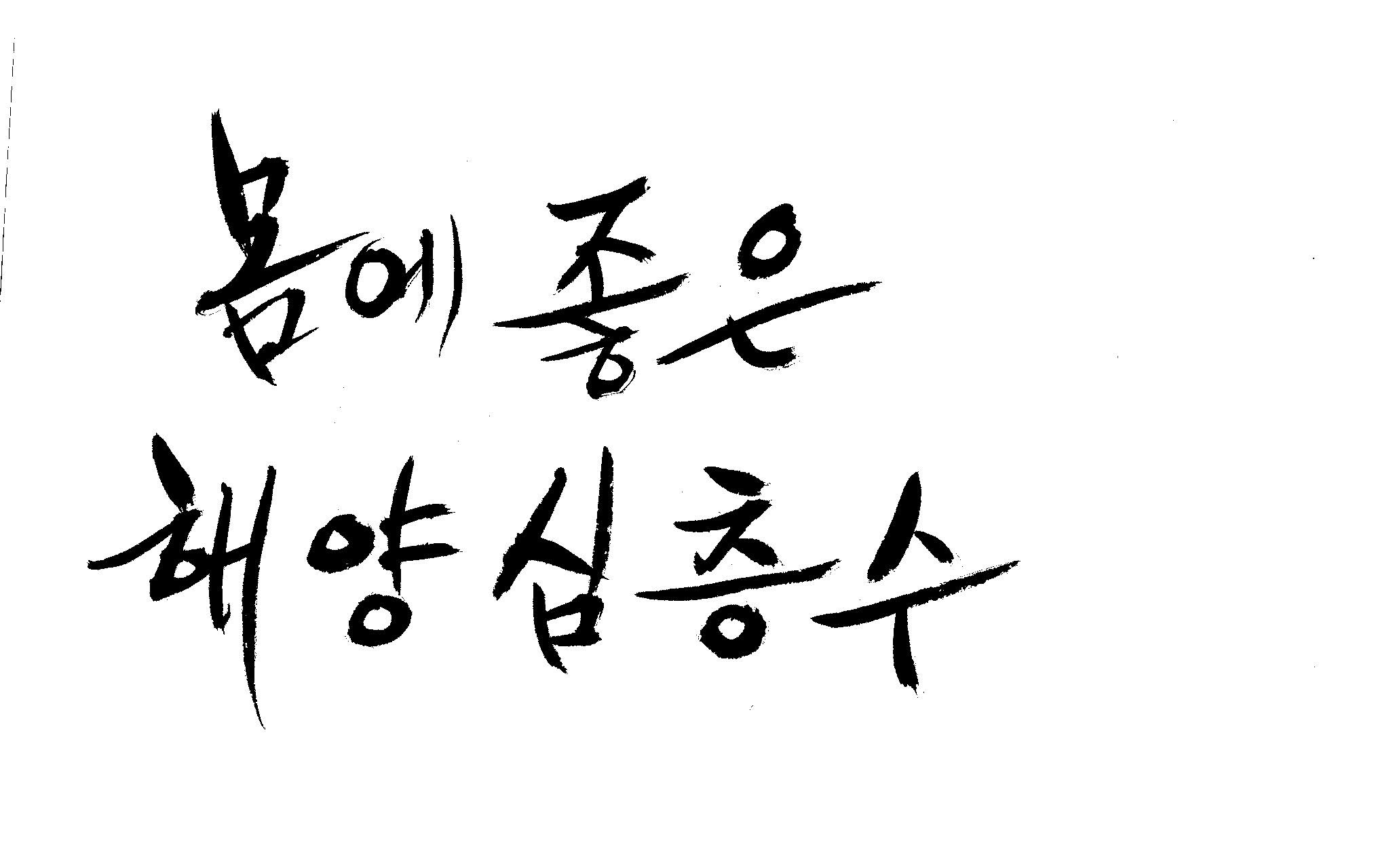 캘리 부탁드려도 될지~ 김철호 일반 1 8045 2009.01.20 00:54 > > > > > > > > > > > > > > 안녕하세요~ > > > > 항상 좋은 정보 많이 보고 가고 있습니다. > > > > 감사합니다~ > > > > 캘리 좀 부탁드려도 될지 모르겠어요. > > > > ' 몸에좋은(愛), 해양심층수' > > > > 바쁘신데 부탁드려요~ > > > > 눈길에 안전운전하시구요~ ^^ > > > > > > > > > >