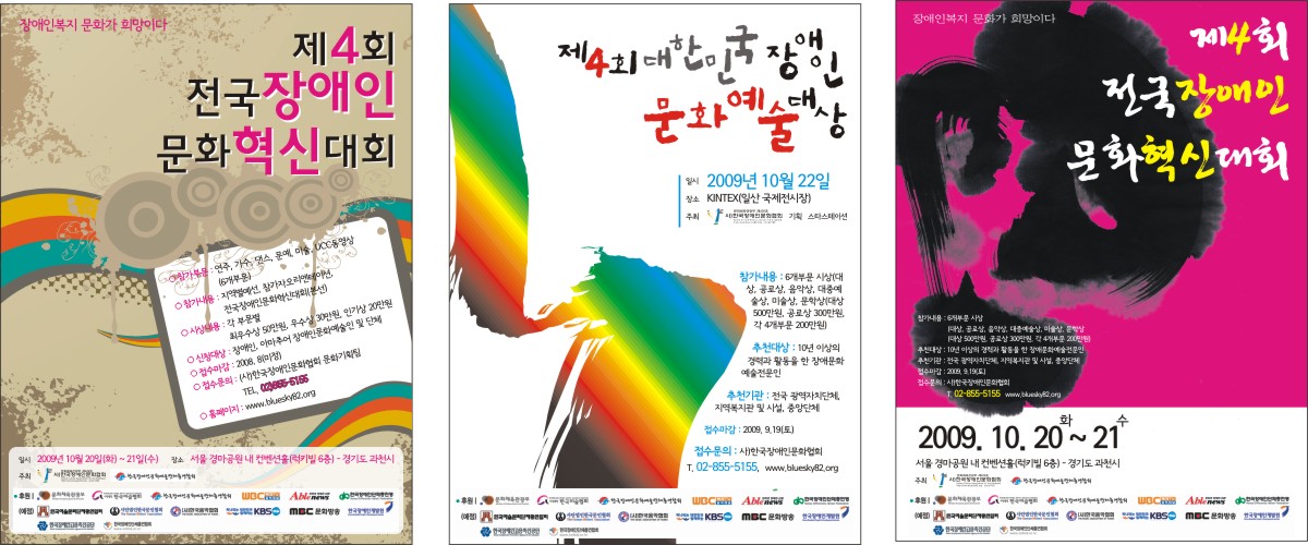 캘리 부탁좀 드려도 될까요? 길선진 일반 3 6699 2009.05.19 11:03 포스터에 제목을 좀 쓰려고 하는데요!!! 제4회 전국장애인문화혁신대회, 제4회 대한민국장애인문화예술대상 요렇게 두개만.. 부탁좀..드리겠습니다. -------------------------------------- 2절 포스터에 사용할 캘리입니다. 대충 컨셉은 첨부파일 정도로 하려고 합니다^^아직 수정하고 있는 단계라.. 미흡한 점이 많습니다.... 예인님 제가 미쳐 글을 보지못했네요^^ 죄송합니다!! 필요한거는 요번주 안으로다가 되면 좋겠지만... 바쁘시다면...조금 늦어져도 상관은 없습니다. 도와주세요~~~~