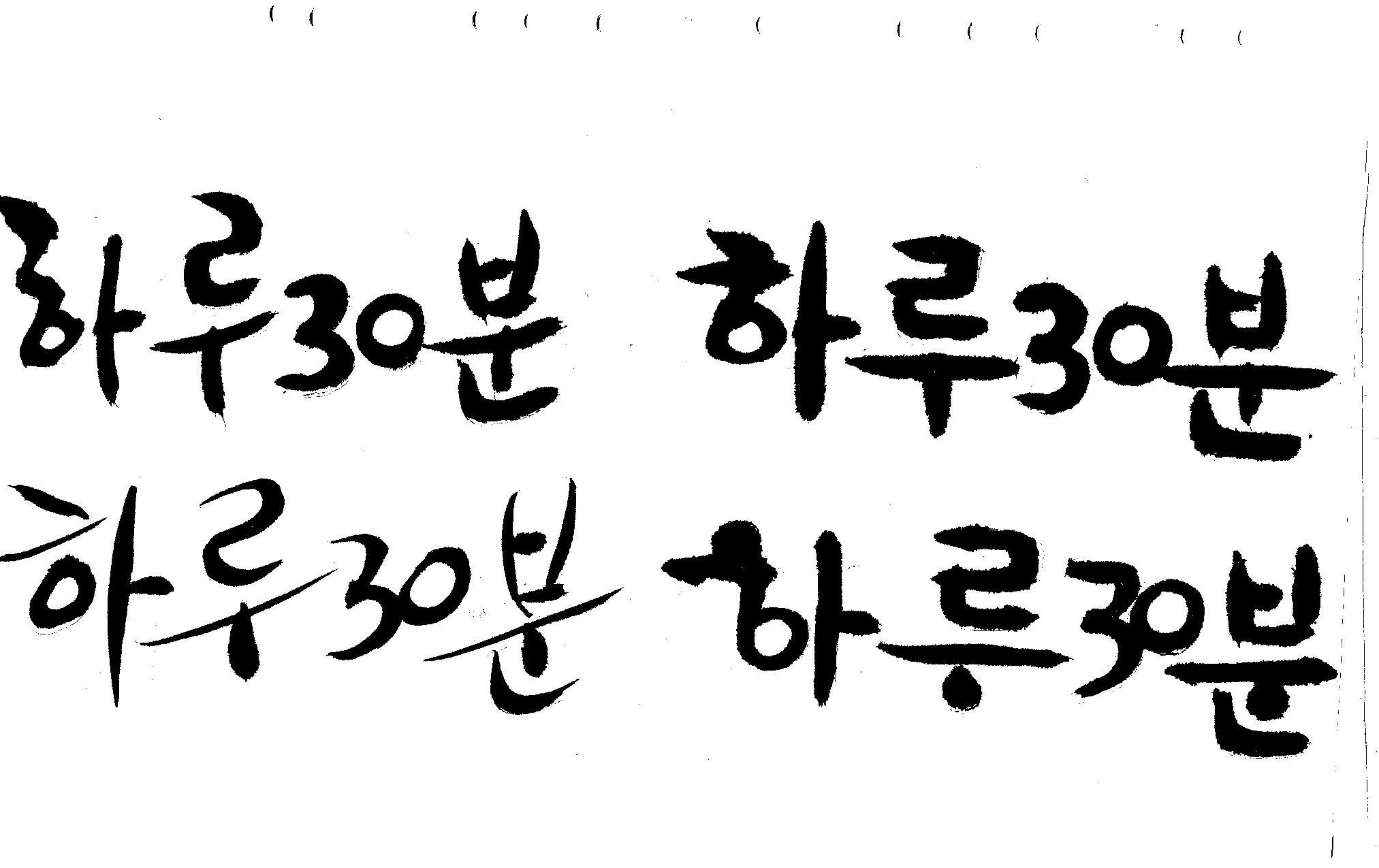 캘리부탁드려요 김철호 일반 0 6906 2008.12.31 13:43 > > 하루30분 <------- 이걸 캘리로 부탁드립니다 > 희망찬 새해 되세요... 스캔이 삐딱하게 되어 손좀 보셔야겠네요..