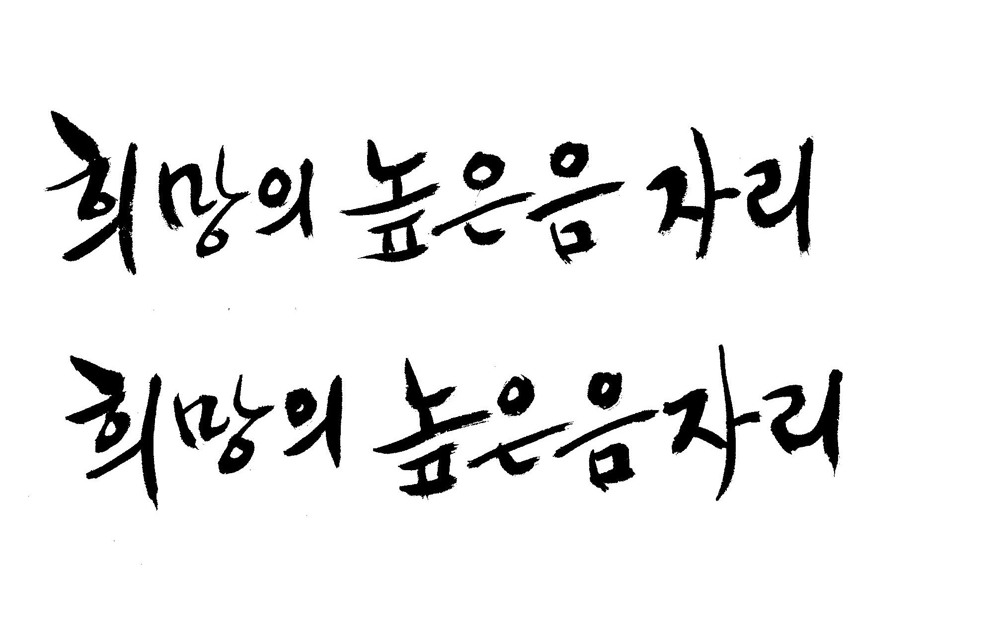 저도 캘리좀부탁이요 ^^;; 김철호 일반 0 6692 2009.01.14 10:59 > > 희망의 높은음자리 > > 감사합니다 ^^ 꼭부탁드려욧 ㅎㅎㅎ > 좋은 글이라서 신경썼는데 만족할 만큼 않나왔네요.. 유용하게 쓰시길...