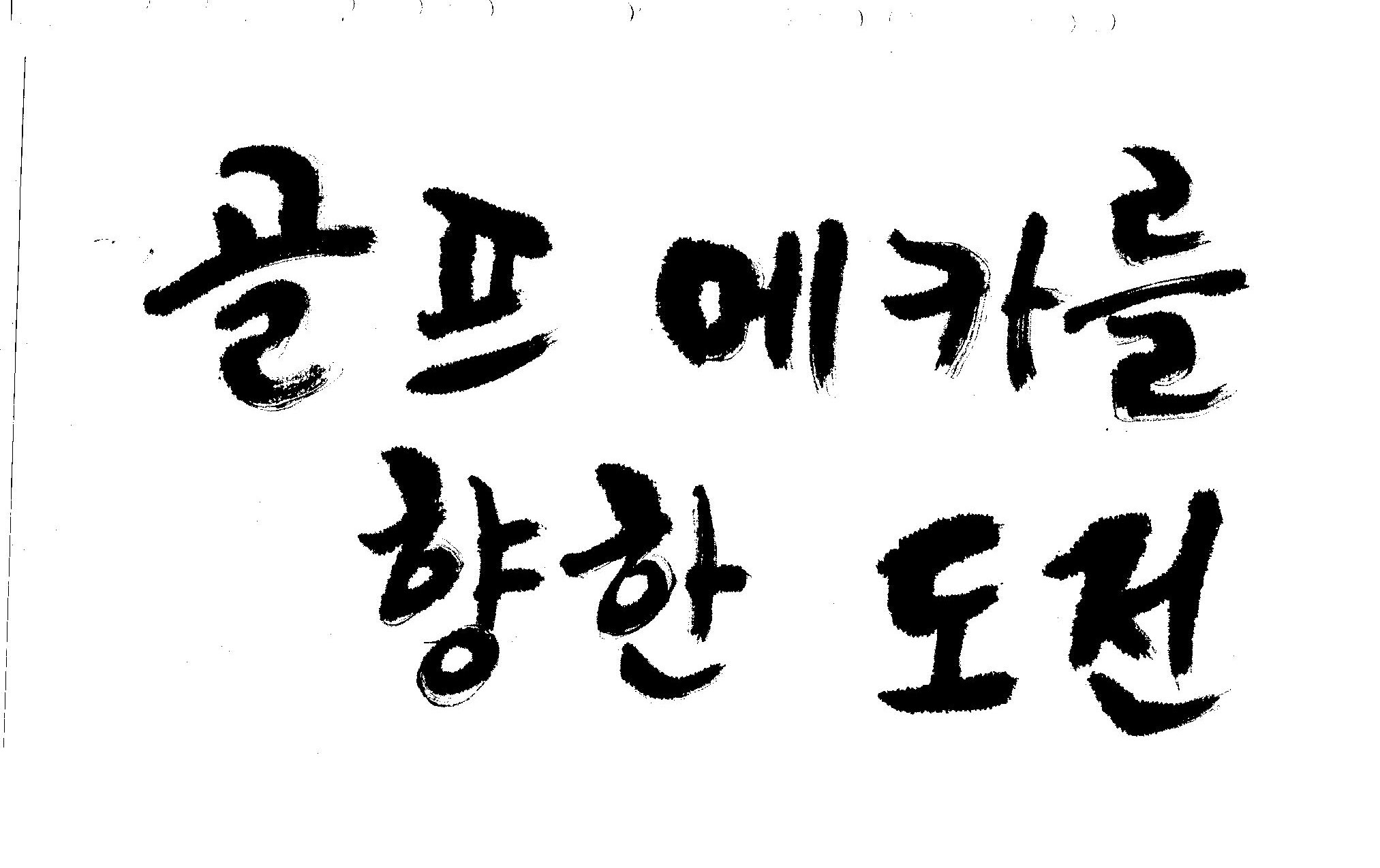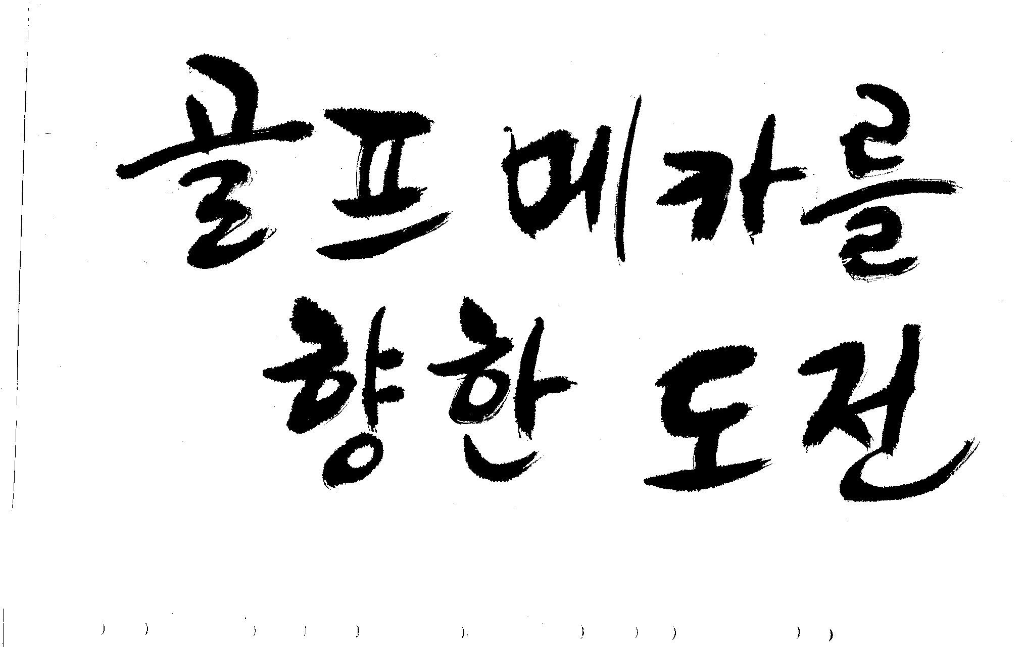 우경의 행복한 캘리세상-골프메카 김철호 일반 0 9331 2009.07.18 10:25 리듬감을 최대한 살리고 ㅡ 스포츠의 운동감과 밝음 기교섞인 획을 배제--일반적인 느낌 굵기변화를 통하여 도전 낱말을 강조 스타일은 비슷하지만 ...한 사람이 썼으니까 ㅎㅎㅎ 서로 다른 글꼴을 올린 것은... 비교하여 보시고... 편집자에게 선택권을 주는 것입니다